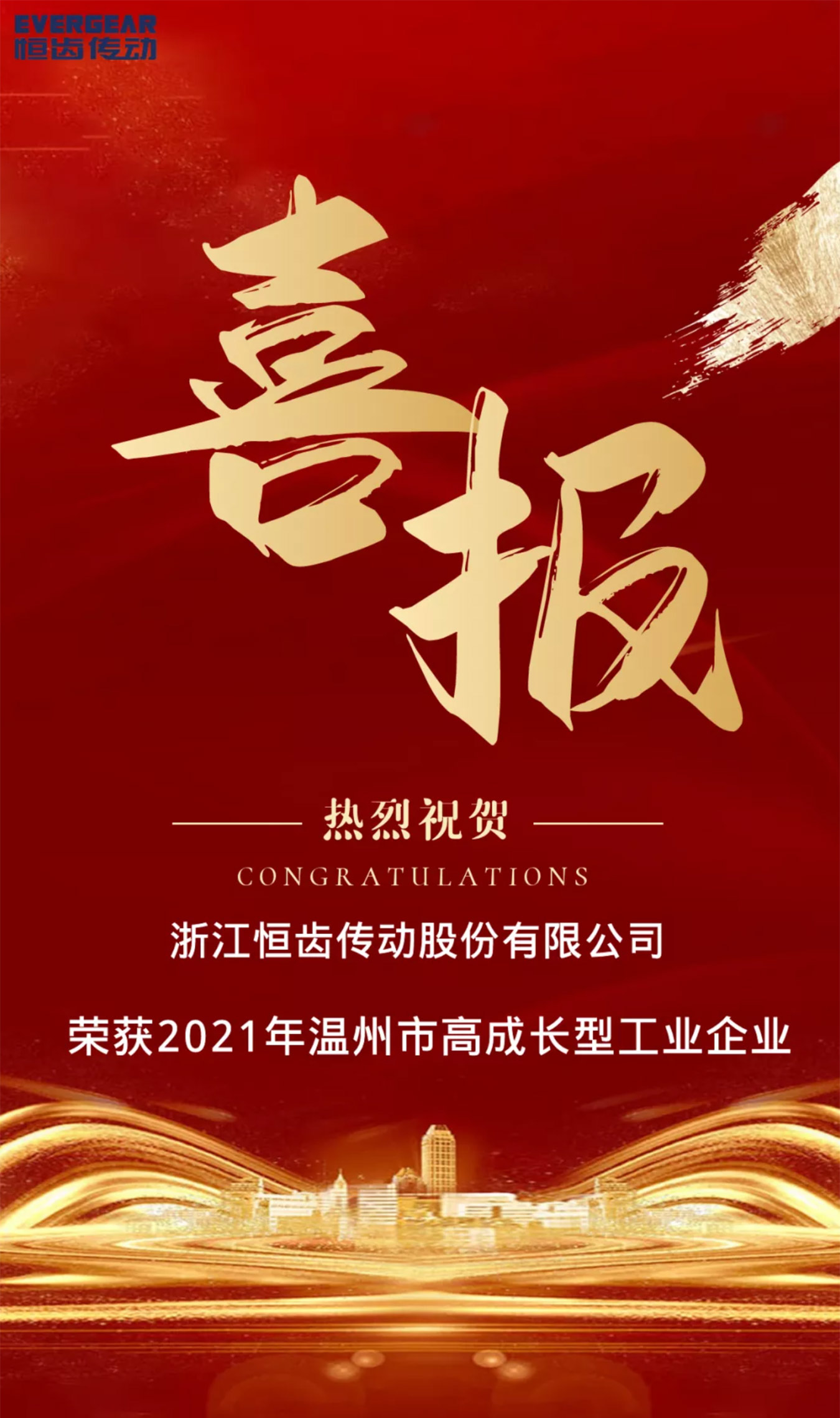 喜報|熱烈祝賀恒齒傳動榮獲2021年溫州市高成長型工業企業